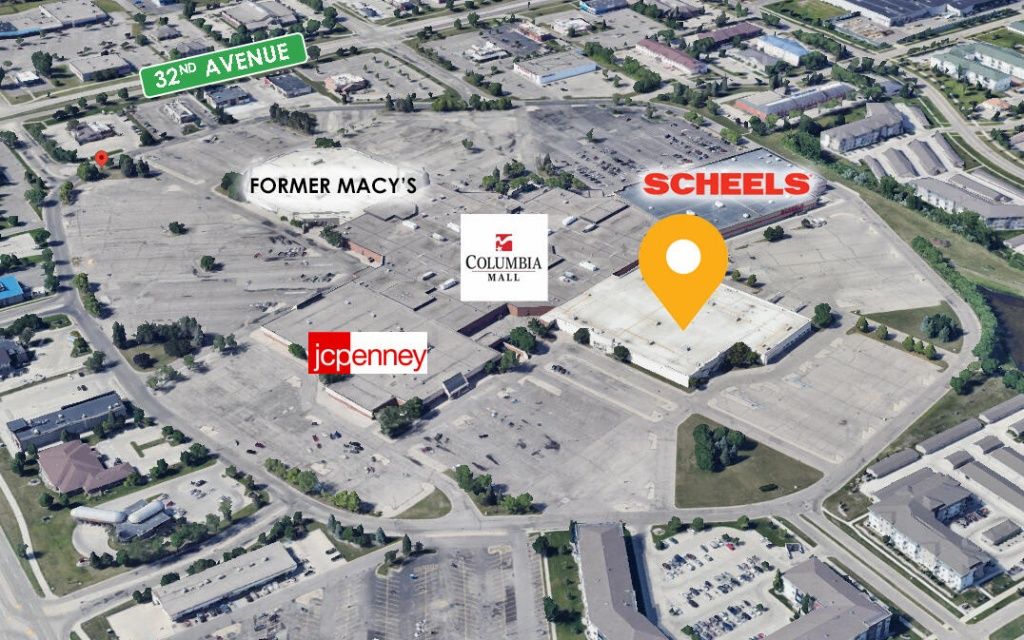Big box building attached to Columbia Mall in Grand Forks, ND near Scheels & JcPenney. Former Sears store with 108,267 SF, multiple exterior entrance & interior corridors, 3 dock doors & an auto service center with 7 drive-in doors. Large building signage is available in multiple locations with an agreement in place providing access to the Columbia Mall parking lot. Potential uses are flexible!